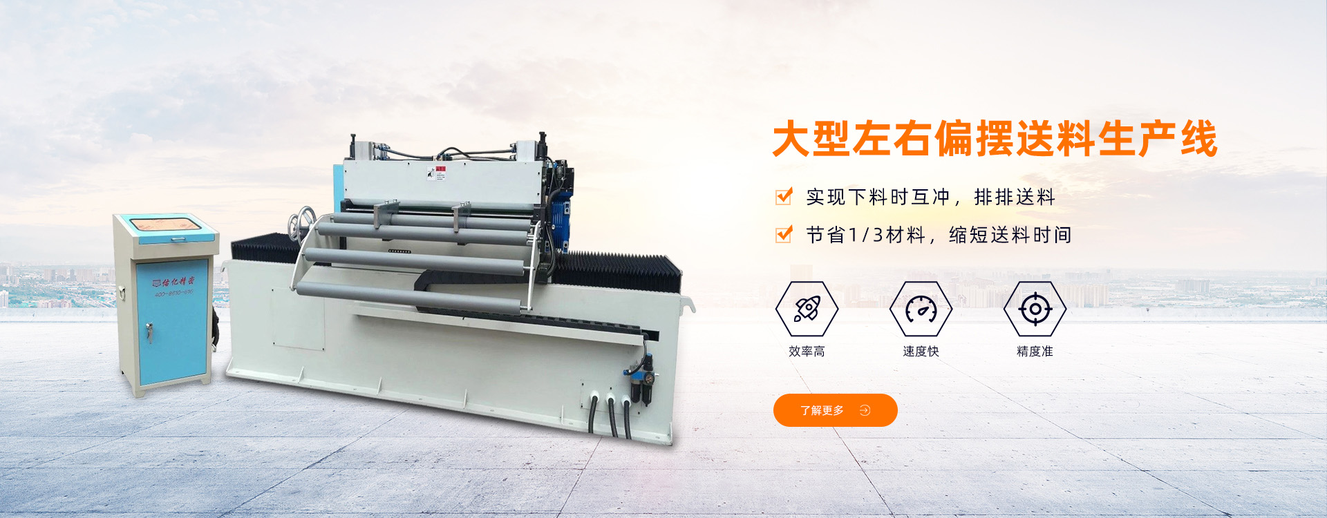 三合一送料機(jī)是集送料、矯正、料架三機(jī)一體全自動送料裝置,高技術(shù),高精密,高效率,在沖床周邊設(shè)備系列產(chǎn)品上可說是矯正送料機(jī)的頂點(diǎn)表現(xiàn),其功能及優(yōu)點(diǎn)特多,省空間,耐用,操作簡單,對特長、特寬、較厚材料等效果特別好,在工業(yè)界一致被認(rèn)為先進(jìn)之自動送...